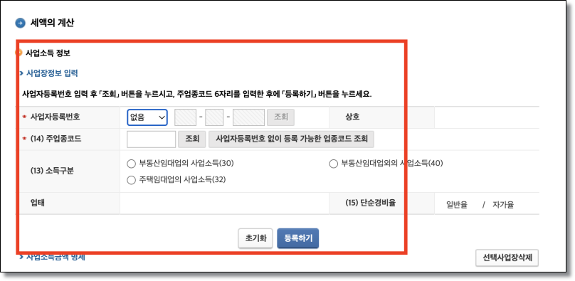 여기까지 하신 뒤에 이동을 클릭하시면 위의 이미지처럼 나오게되는데요. 사업자가 없는 분들은 없음을 하신 뒤에 있는 분들이라면 사업자번호를 클릭하시면 됩니다 그리고 등록하기를 눌러주시면 됩니다.