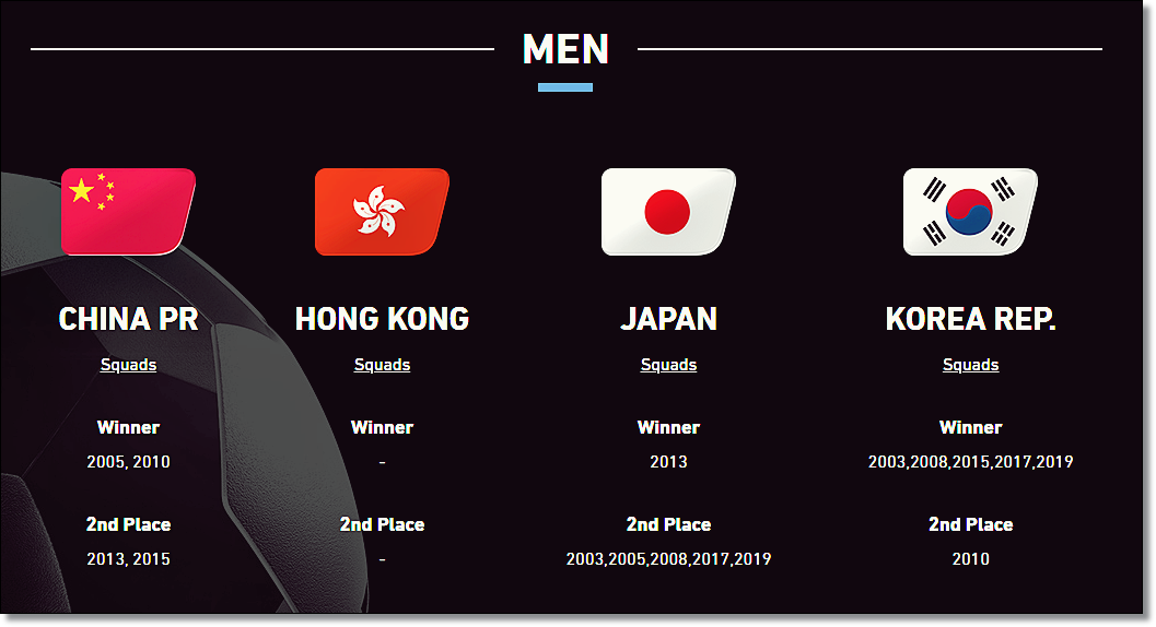 ベントゥホ男子サッカー国家代表は大会元年の2003年から釜山で開かれた直前大会まで計5回優勝を記録しました。 最近3連廃を記録している今年大会で4回連続優勝を狙っています。 ただ今回の2022 EAFF E-1チャンピオンシップソン・フンミン、ファン・ウィジョ、ファン・ヒチャンなどのヨーロッパでプレーしている選手たちが借り出されず、最近Kリーグで優れた活躍をしているイ・スンウも含まれませんでした。
