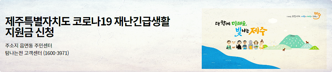 이번 시간에는 제주도 재난 긴급 생활지원금 신청 대상 및 방법 대해 알아보는 시간을 가져보겠습니다. 8월 1일(월)부터 신청이 가능한 이번 재난 긴급 생활지원금은 1인당 10만 원씩의 지원금을 지급하고 있는데요. 제주도 온라인 누리집을 통해 신청을 온라인으로 신청 또는 방문접수를 통해 신청이 가능합니다.